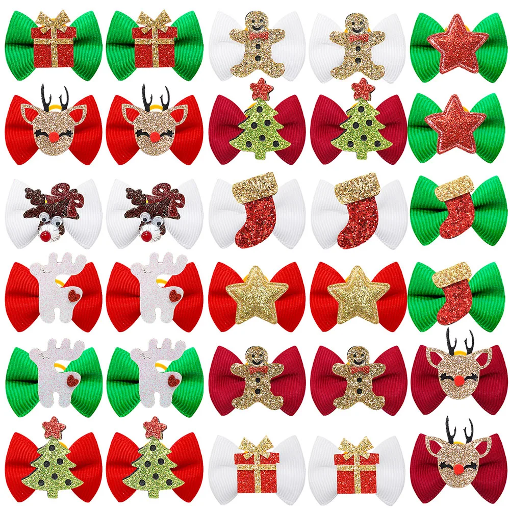10/20/30PCS New Dog Bows With Rubber Bands For Christmas Party Puppy Bowknots Cartoon Accessories Pet Hair Accessories For Dogs
